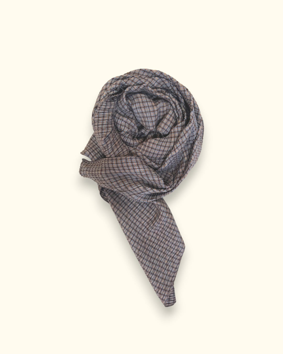 Ligera, suave y versátil. Esta bufanda de textura plisada en tono marrón y azul es perfecta para completar tus looks de otoño e invierno. Se adapta con facilidad a distintos estilos, ya sea anudada al cuello, sobre los hombros o como accesorio en el bolso.
