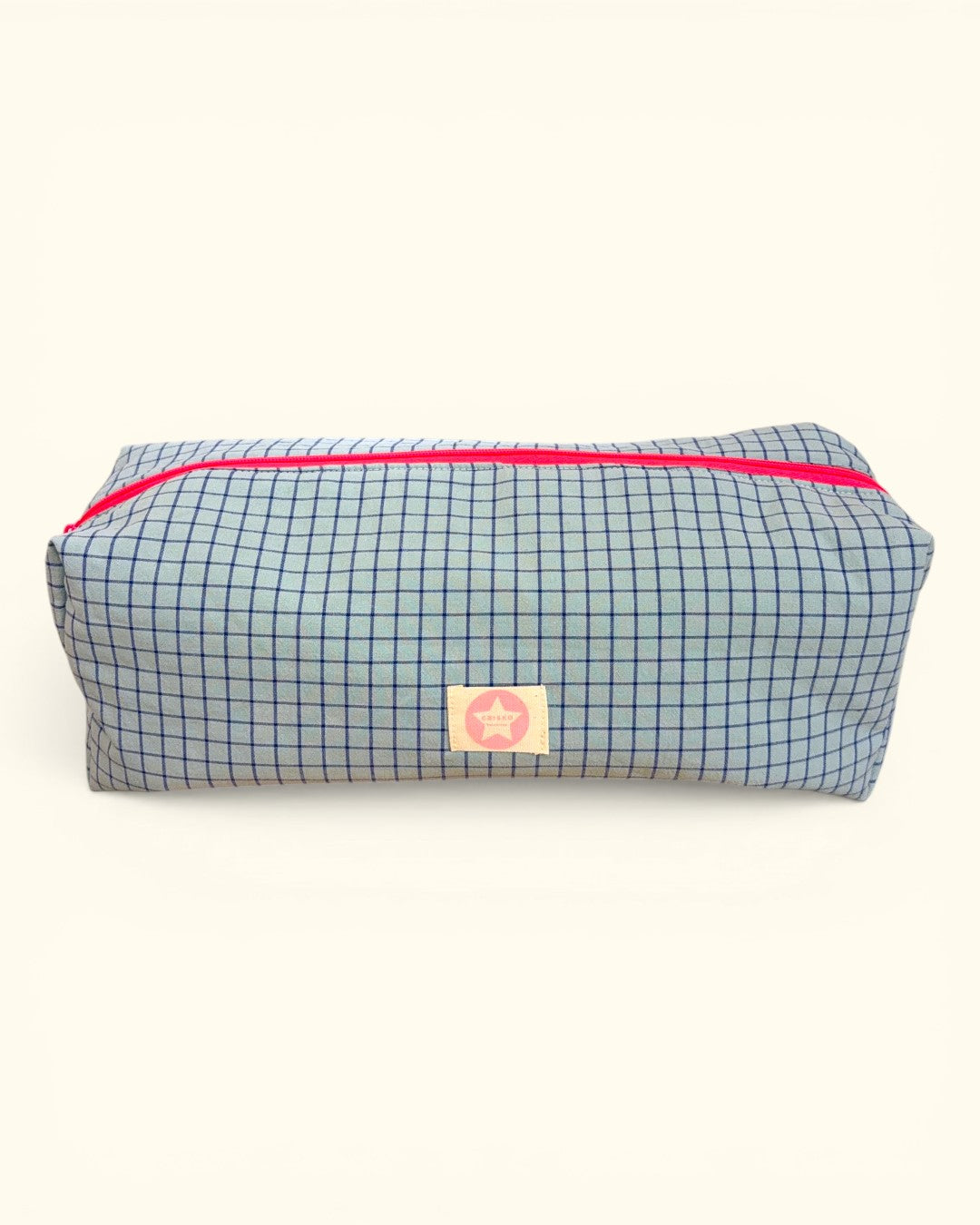 Una funda práctica y bonita para organizar todos tus accesorios de pelo. Con diseño acolchado en estampado de cuadros azul, es perfecta para guardar herramientas como la Dyson y sus cabezales de forma ordenada y protegida, tanto en casa como de viaje.