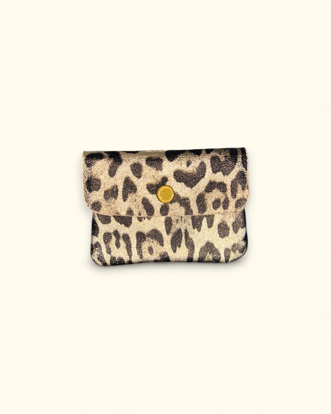 Monedero de piel con estampado de leopardo, un toque salvaje y elegante para complementar tu look.